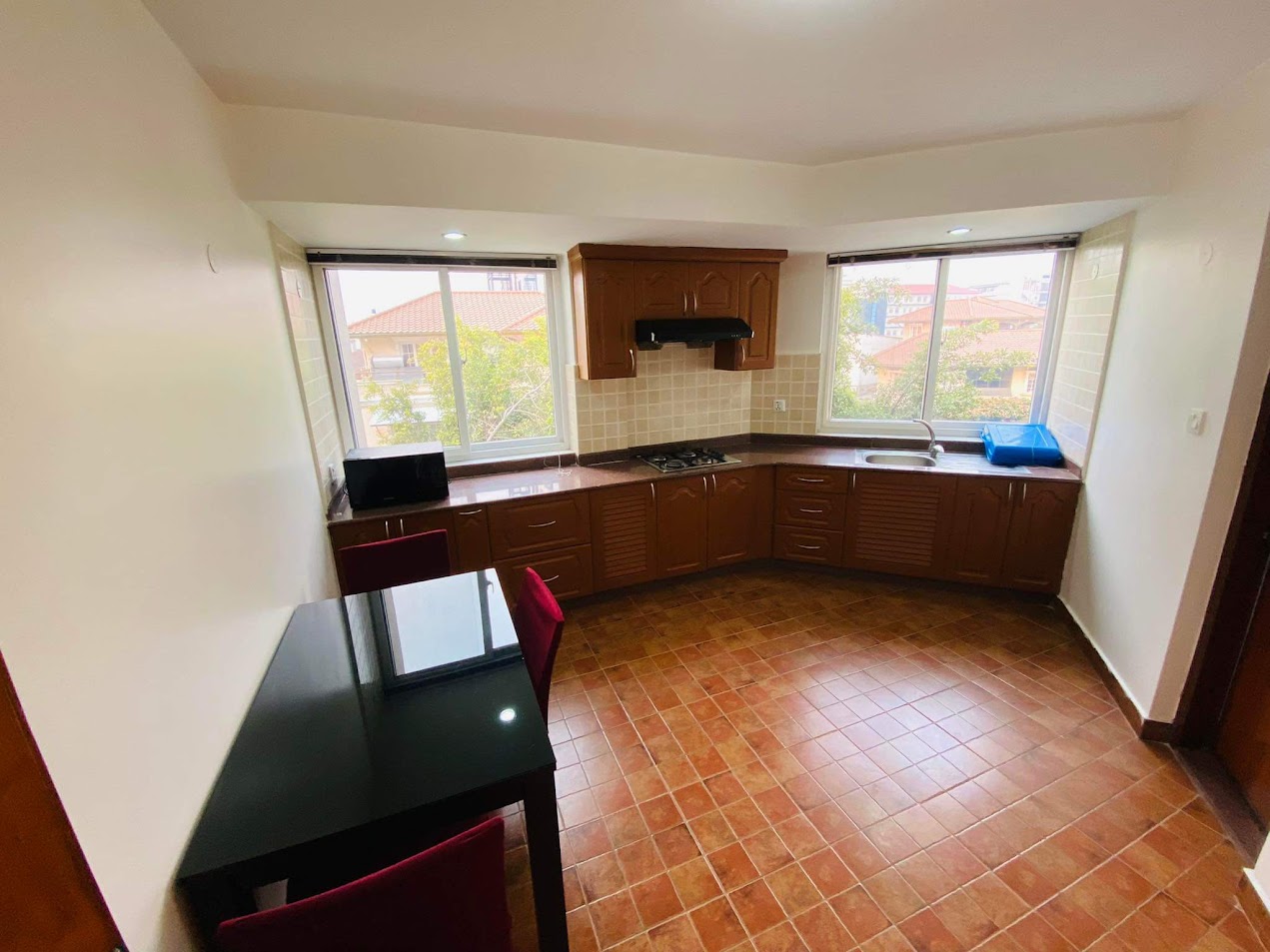 - Well-equipped kitchen – Refrigerator, stove, microwave, plus a complete set of dishes, cooking utensils, and cutlery.